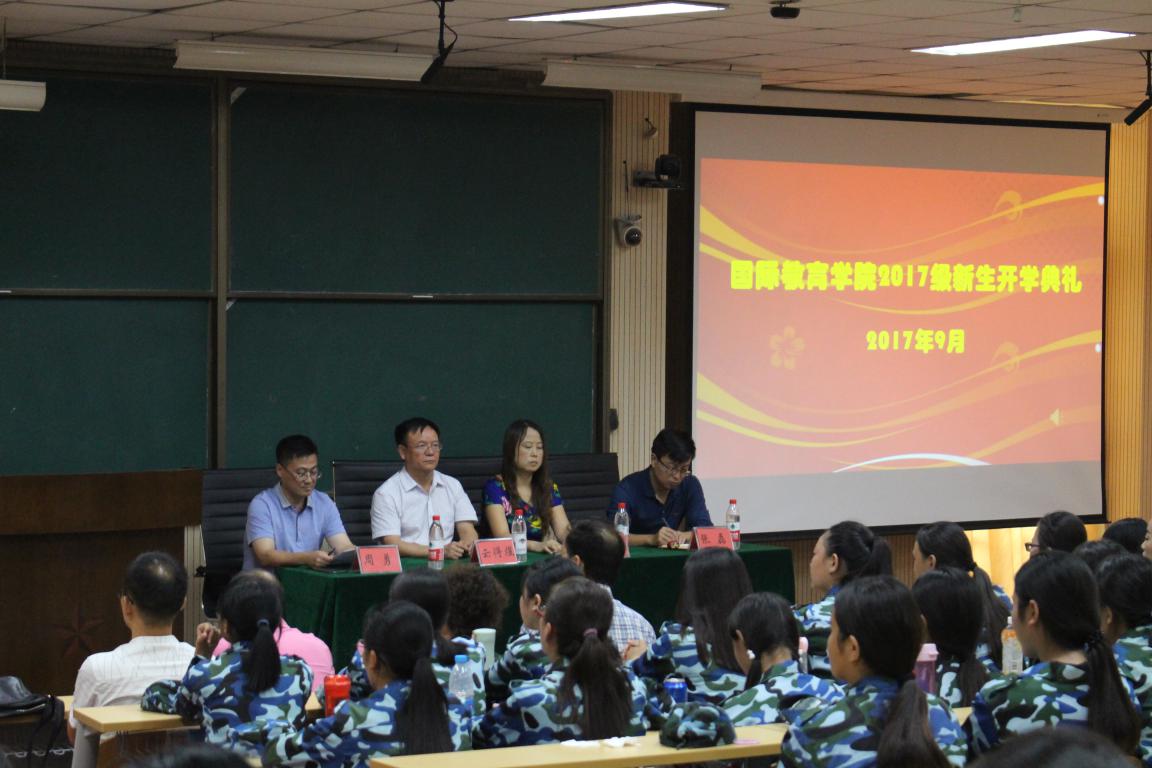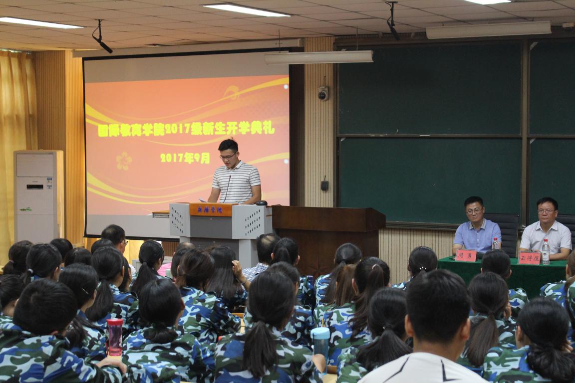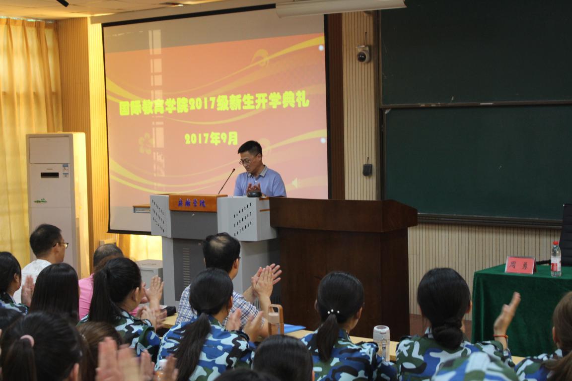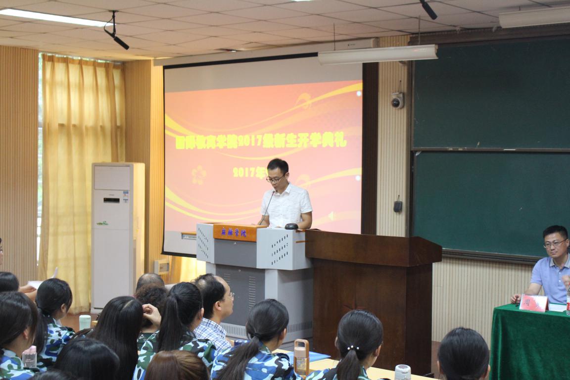 9月15日下午,william威廉中文2017级新生开学典礼在A05-105报告厅举行。党委书记郭兵,院长周勇,副院长张磊,副院长云得煜,william威廉中文全体教师出席了典礼仪式。典礼由院长周勇主持。