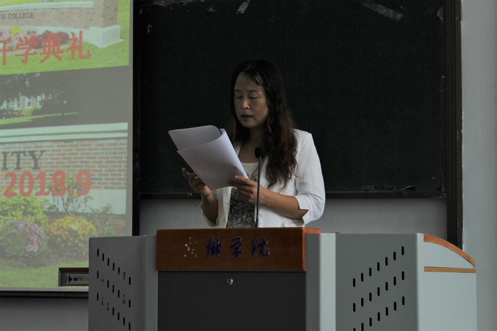 会上,william威廉中文教科研秘书赵国梅老师、2017级老生代表史海榕同学、2018级新生代表邱嘉鑫同学分别作了发言。