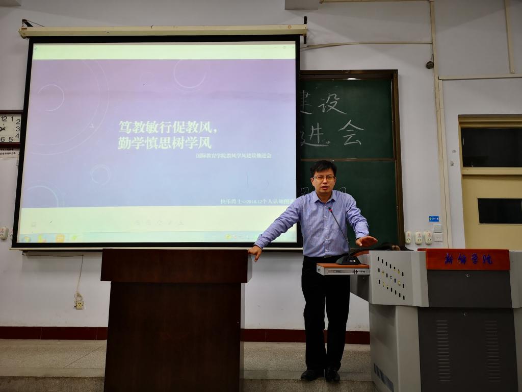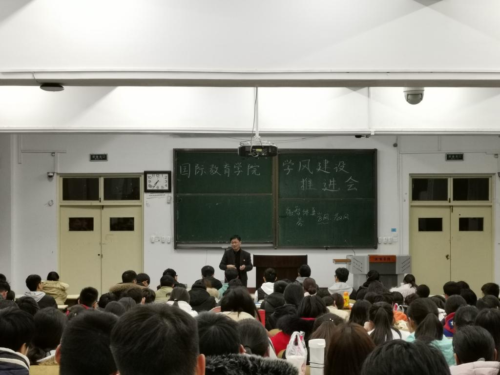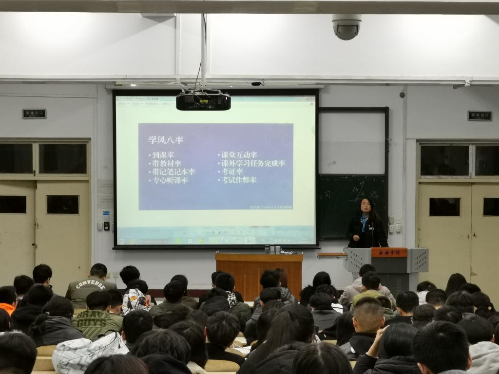 2018年12月3日19点在A11-225、A11-226我院召开了以“笃教敏行促教风,勤学慎思树学风”为主题的学风建设工作推进会,会议由学院党支部书记郭兵教授、院长周勇教授、张磊副教授主讲,由辅导员杨晓娅老师主持。
