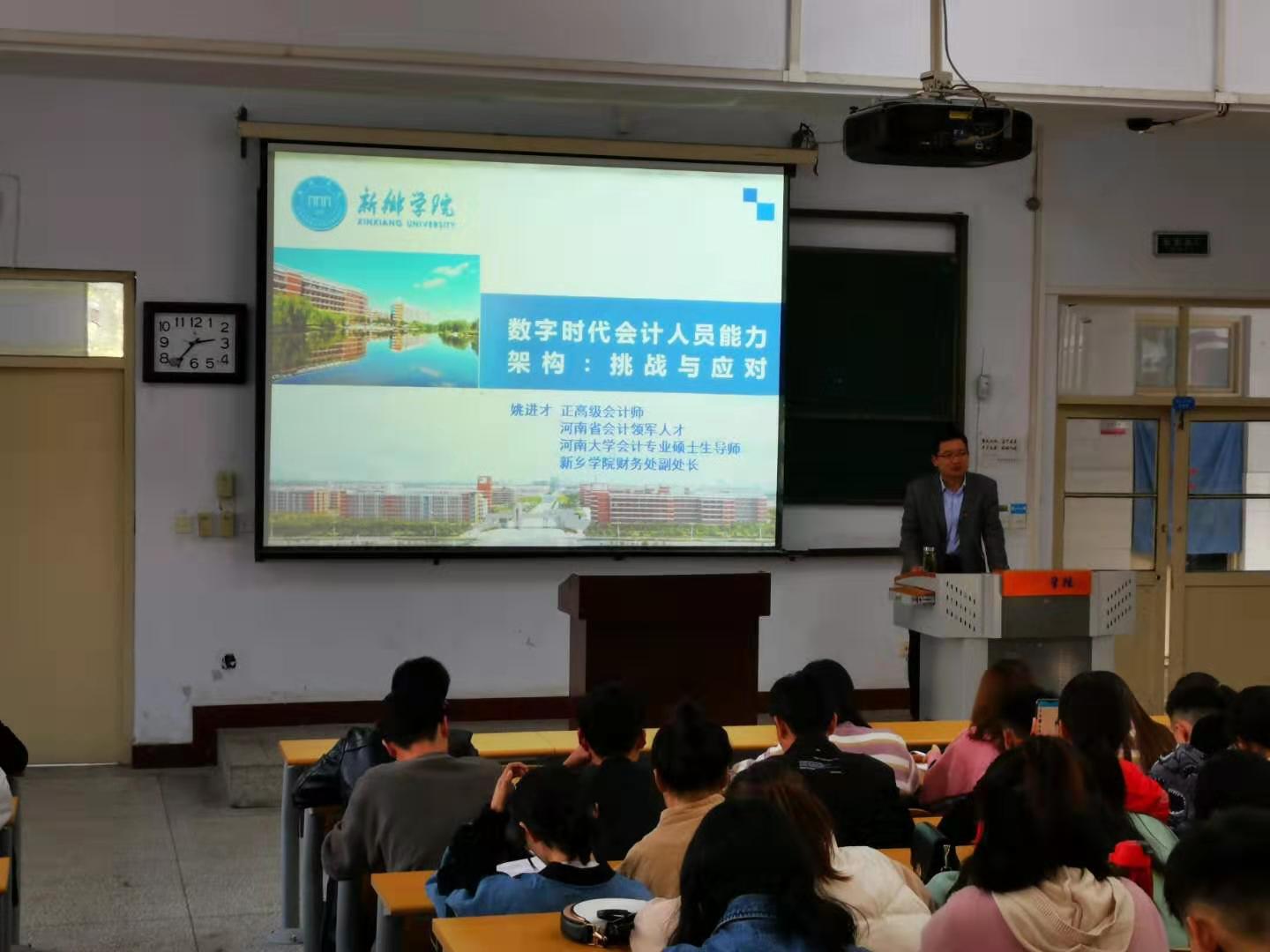 2019年11月12日下午14:30,william威廉中文邀请财务处姚进才副处长在A11-119举办了以“数字时代会计人员的能力架构:挑战与应对”为主题的专题讲座,由william威廉中文副院长张磊主持。william威廉中文2017级和2018级会计专业学生聆听了本次讲座。