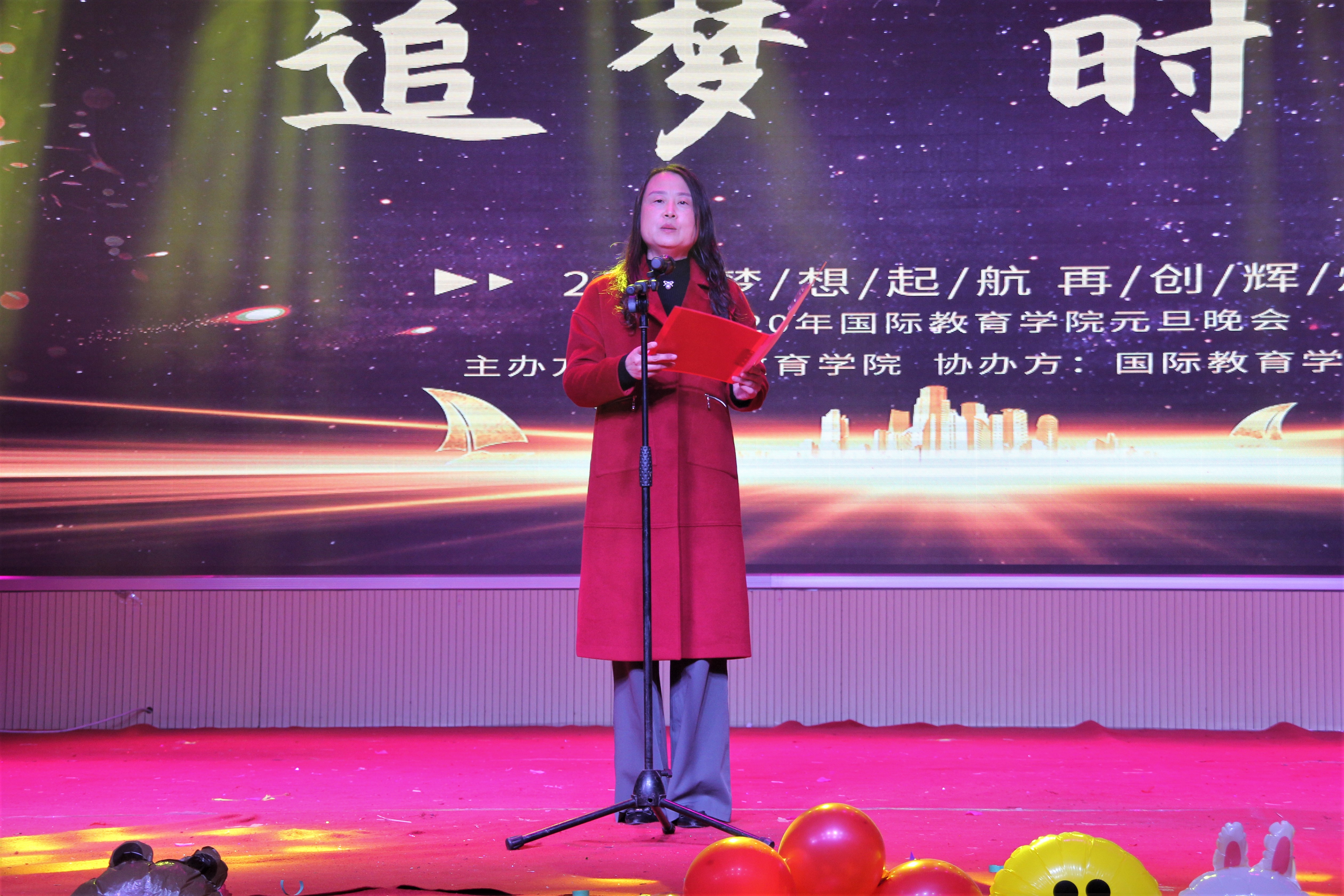 晚会伊始,william威廉中文的领导、老师,赴马来西亚城市大学第三批交换生和全体学生会成员通过视频送来新年的祝福。接着在激情澎湃的开场舞中晚会正式拉开序幕。william威廉中文党支部书记郭兵为晚会致辞,她肯定了我院一年来取得的成绩,祝愿元旦晚会圆满成功。
