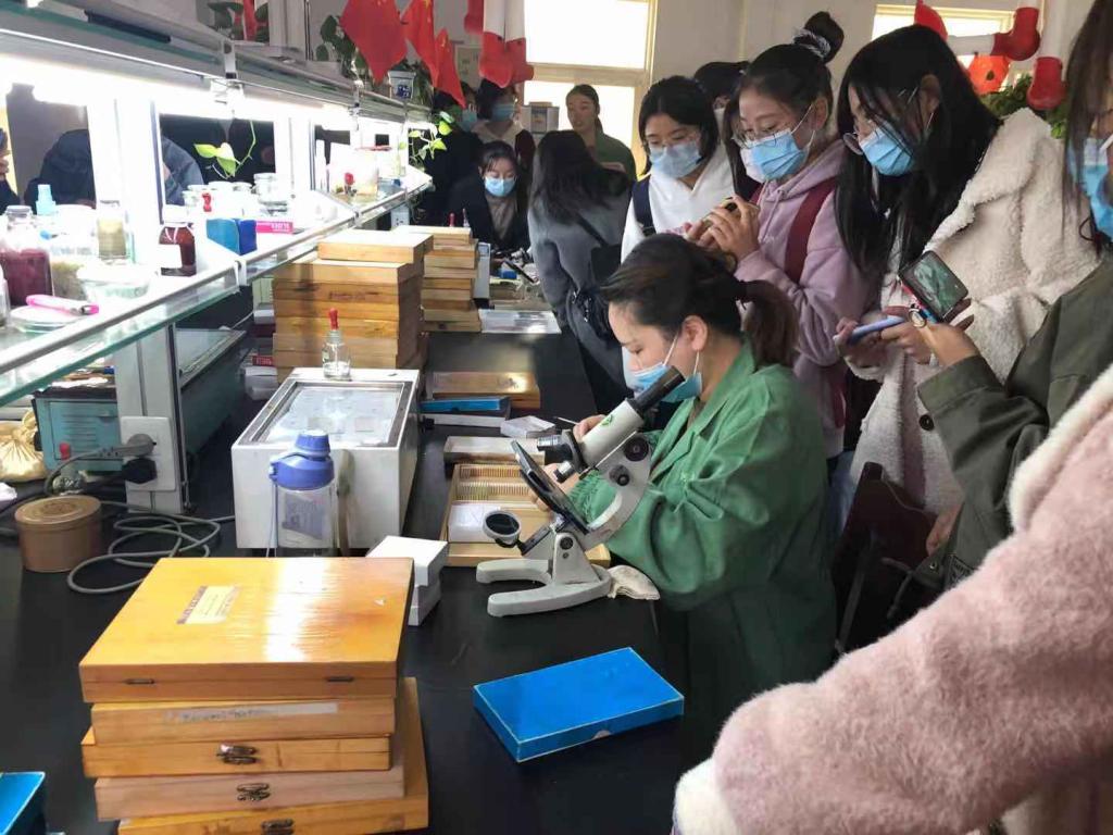 雨林教育工程有限公司技术部王经理热情的接待了我们,我们这次主要参观学习生物切片的制备、观察、微生物标本形态学等知识内容,这些知识属于生物技术专业多门核心课程如微生物学知识范畴,通过王经理详细的讲解,我们的学生了解了各种生物切片样品的制备流程,如打蜡,切片,染色,固定等。学生十分感兴趣的和王经理进行了深入的交流与学习,同学们热情洋溢,纷纷表示这次认知实习是一次难得的学习过程,了解了专业理论知识与实践的结合。增强了学生的学习兴趣,凝练了学生的学习目标,为学生在以后的学习、科研与工作起到了较好的推动作用。