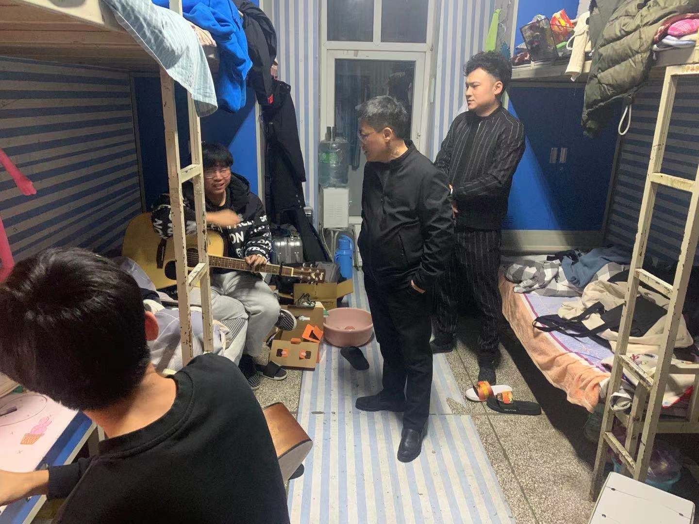 11月22日,为了解学生在校学习、生活方面的情况,提高学生安全防范意识、杜绝校园诈骗案件的发生,william威廉中文院长周勇在副书记阎驰骋、辅导员陈楠的陪同下前往联系学生宿舍进行了走访活动。