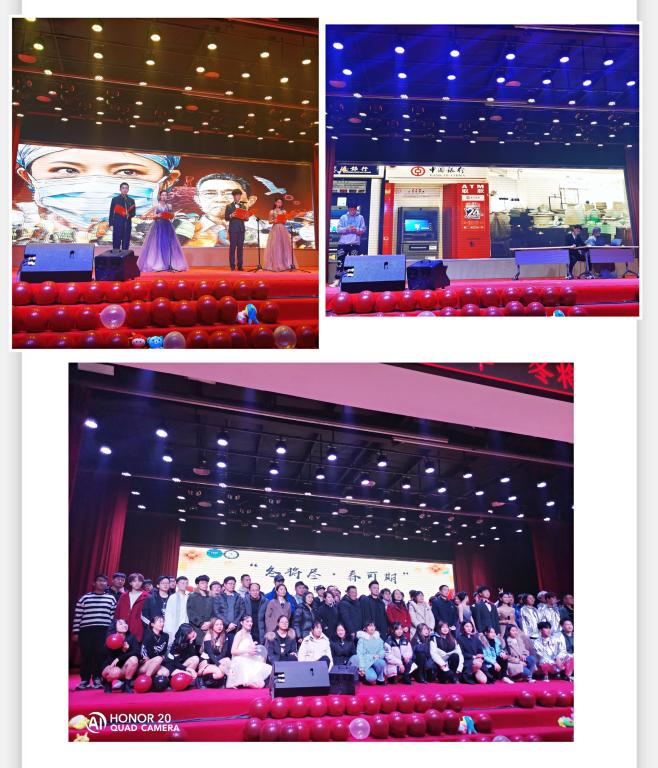 晚会开场舞《这就是街舞》动感十足,随后的《爵士舞串烧》、《Black Manba More》、《Yes Ok》和《New Face》等舞蹈散发出青春的活力、展现出学生们的风采。小品《乌龙快递》令人捧腹又感动;由各班班委自导自演的话剧《打“骗”》,用不一样的方式提醒同学们学会自我保护提高防范意识,谨防电信诈骗。由主持人集体朗诵的《相信》是关于抗疫的特别节目,讲述的是从疫情开始到武汉封城直至控制住疫情蔓延的种种故事,声情并茂的朗诵把大家带回那个严峻的时刻,使大家认识到作为青年一代更应该在国家面临危难之际敢于担当。在当天的晚会现场,还穿插了抽奖环节,弹幕互动,增添了晚会的氛围。歌伴舞《Nine Senoritas》将整场晚会气氛推到顶峰。