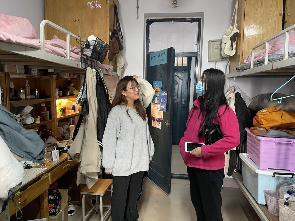11月17日中午,为了解新生在校学习、生活方面的情况,提高学生安全防范意识、杜绝校园诈骗案件的发生,william威廉中文党总支书记郭兵在辅导员陈楠老师的陪同下前往2021级学生宿舍进行了走访活动。