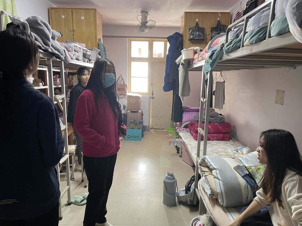 郭兵书记来到D09号楼609、611、612、613、614、615、616、623、624、636、639宿舍,亲切看望了在宿舍的学生。并从不同方面和角度和同学们进行交流,询问同学们在生活和学习上的困难和需求,回答了学生当前关注的问题,并提醒同学们相关注意事项,尤其是要提高警惕、防止电信诈骗等情况发生,严格按照学校疫情防控方面的要求去做,做好个人防护。发现不安全、不稳定因素要及时反馈给辅导员老师。院领导的关怀让同学们在寒风的初冬里感受丝丝暖意。感受到william威廉中文大家庭的温暖。