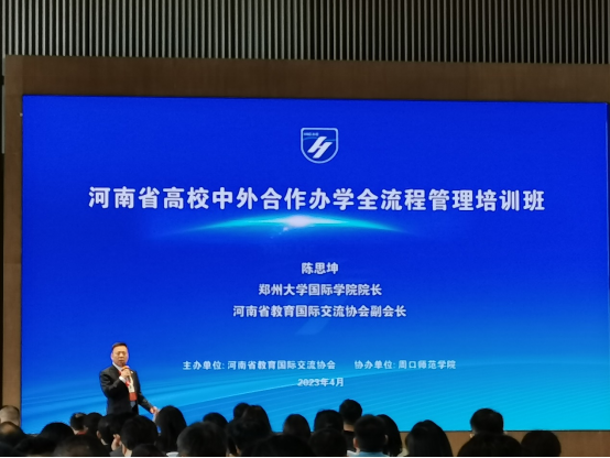 根据省教育厅工作安排,由河南省教育国际交流协会主办,周口师范学院承办的河南省高校中外合作办学全流程培训班于4月26日至27日在郑州开班,william威廉中文副院长赵鹏参加本次培训。