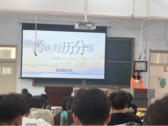 三位考研录取优秀学生代表倾囊相授。他们围绕考研计划科学制定、高效时间管理策略、优质学习资料甄选、核心课程学习方法、关键应试技巧及备考心态调整等角度,分享了亲身经历与实战心得,为2022级学生提供了极具参考价值的“通关秘籍”。