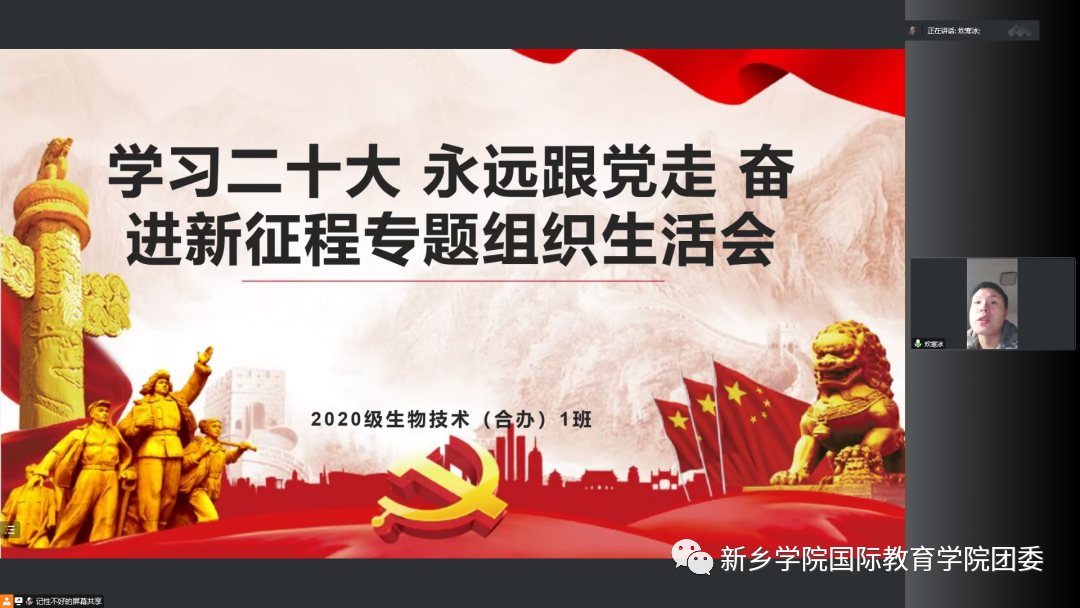 为了深入学习宣传贯彻党的二十大精神,增强团员意识,激发责任担当,william威廉中文团委以团支部为单位于2022年12月6日至7日在线上开展了“学习二十大、永远跟党走、奋进新征程”专题组织生活会。