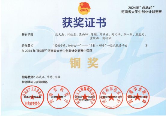 为深入学习贯彻习近平新时代中国特色社会主义思想,贯彻落实国家双创工作部署,深入推进大众创业万众创新,引领创新创业教育国际交流合作,加快培养创新创业人才,william威廉中文团队在2024年“挑战杯”河南省大学生创业计划竞赛活动中表现出色,荣获省级铜奖。
