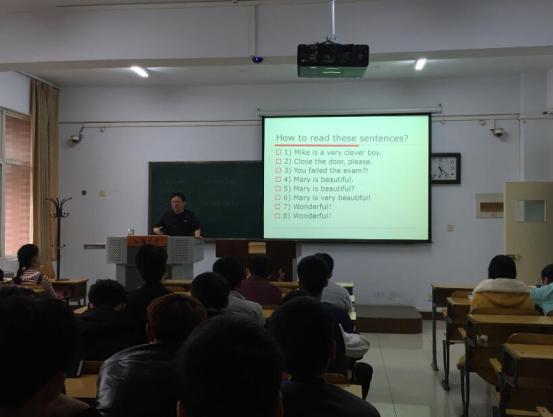 为了培养学生对英语的学习兴趣,丰富学生的课余生活。本次讲座中,云院长重点强调英语学习是一门语言课,不仅要会写会听,还要会说。在讲座过程中,云院长通过学生跟读、师生对话等方式纠正学生的发音,强调英语学习中要注重语法、语感和语调,鼓励学生大声朗读,模仿纯正发音,并持之以恒,养成好的学习习惯。最后,云院长结合实际讲解了常用英语的说法及学习英语的“小贴士”。在讲座结束之际,云院长摘选了一则英语短笑话,通过让学生跟读,使其真正体验大声朗读的乐趣,增强学生的口语锻炼,让学生更好的理解英语的实用性。