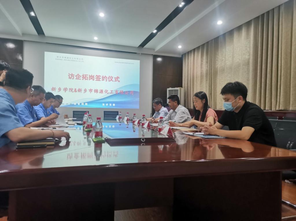 座谈会上,新乡市锦源化工有限公司党总支书记、董事长樊明伟对宋校长一行的到来表示欢迎,介绍了企业概况和人才需求情况,重点介绍了企业为了留住优秀大学毕业生,引导他们积极投身实体经济建设,所采取的一些系列措施。